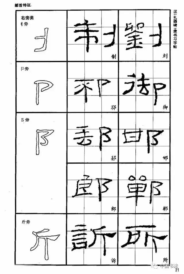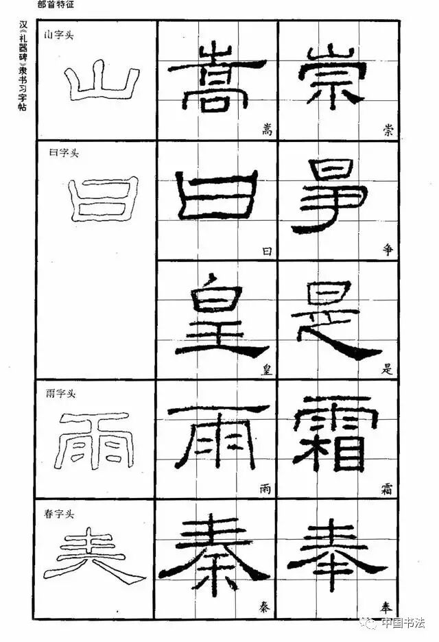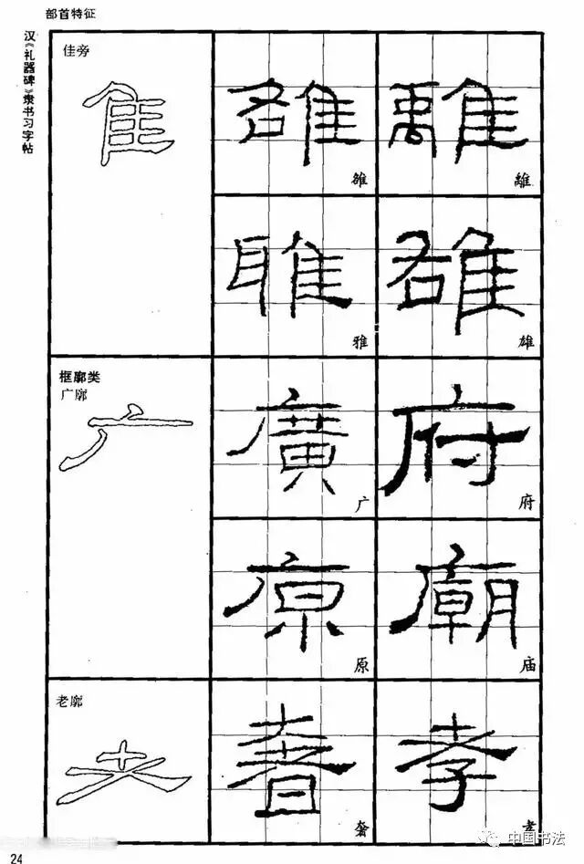 书法家之路《汉·礼器碑隶书习字帖》,隶书书法学习教材图片31张。本册隶书字帖图文并茂,主要内容为基本笔画、部首特征、结构规律。