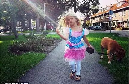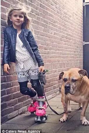 这个小女孩叫Lynn Bakker,今年6岁。在她身边的狗狗是斗牛犬Jaden,是她最好的朋友。