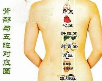 背部是以脊椎为中心的整个人体的全息缩影,人体的五脏六腑均可在背部找到相应的对应区,如背上部对应肺和心脏,背下部对应脾、胃、肝、胆,腰部对应肾、膀胱、大肠和小肠。背部健康与否,往往直接反映着脏腑是否正常运转。