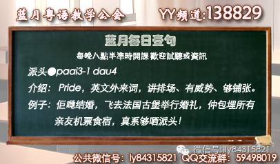 更多粤语课程到YY频道138829或蓝月在线课程网页观看。