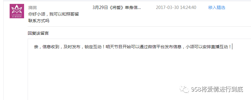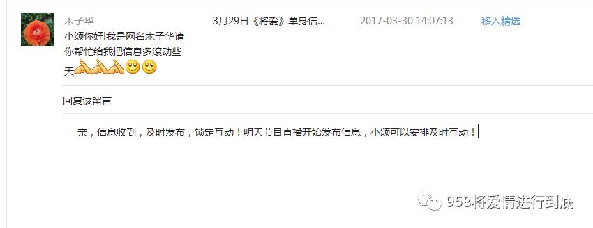 3月30日《将爱情进行到底》节目直播中有两位网友直播在线互动: