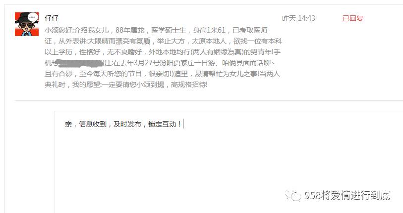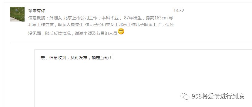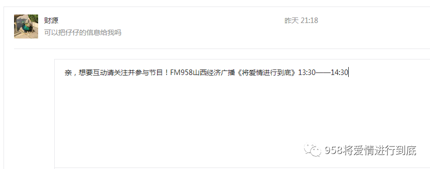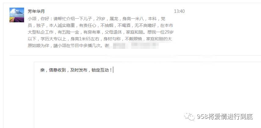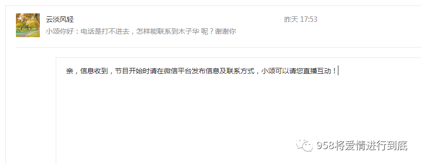 小颂提示:想要互动的可继续参与明日13:30——14:30《将爱情进行到底》