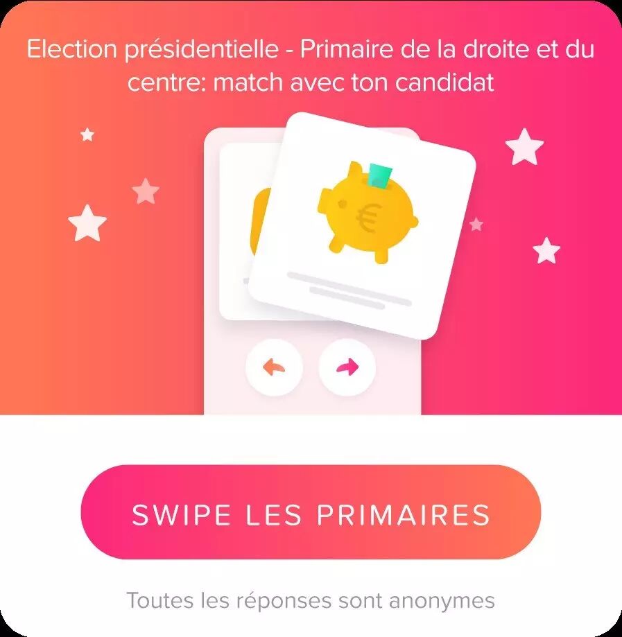 Tinder的用户多为“零零后”(2000年代出生)年轻人。参与这个行动的人要回答与右派七位候选人的竞选纲领有关的一系列提问,如:“是否所有的人都应交税?”或“是否应当在公共场所禁戴宗教标识?”根据他们的回答,用户会看到与他们最相近的候选人。