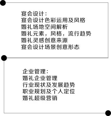 此次婚礼课程,从现代艺术设计与婚礼概论,到如何将空间艺术运用至宴会场景,再到如何打造高品质的创意宴会空间,都将做详细的讲解与分享。企业运营管理课程会带您深入了解思普瑞运营之道,全面解析婚礼公司模式,帮助您从行业乱局之中脱颖而出。课程最后,还会对学员的作业进行分析与点评,以及挑选学员曾经的作品进行指导与改善。