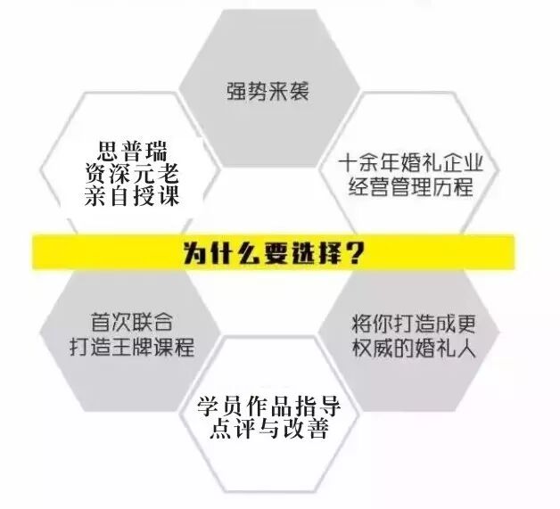 思普瑞联合创始人,思普瑞运营总监,思普瑞宴会设计总监,思普瑞知名策划师?你以为这些资深行业领跑者的就是我们所有老师?那你就错了,还有我们思普瑞设计总监,思普瑞策划总监,思普瑞资深宴会设计总监,秘密花园花艺资深花艺总监,赛雅灯光资深灯光舞美培训师都将亲临课堂,名师教学,资深婚礼行业经验陪读,这种氛围下,你还担心自己刷不到技能?那我确定是你杞人忧天。