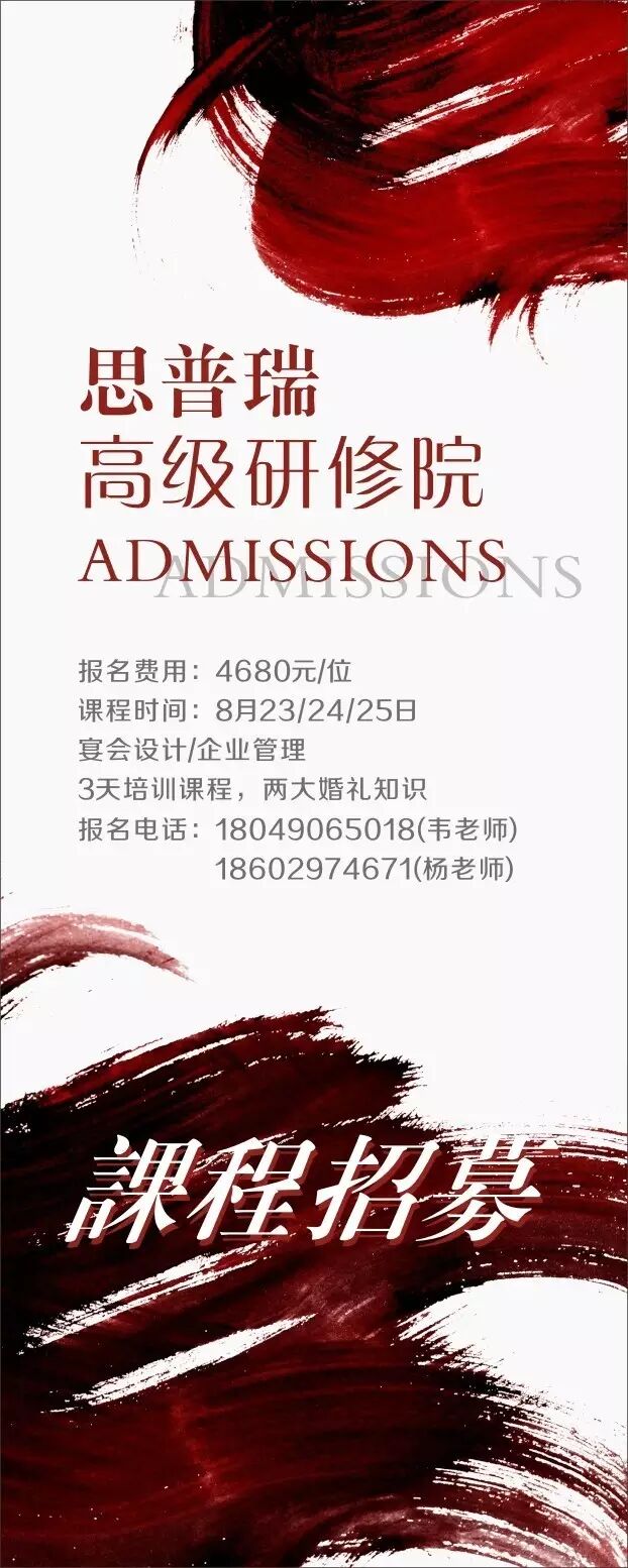 在这里你将掌握婚礼宴会方案的设计,婚礼场地的勘察,婚礼现场的灯光布置方式,打造出高品质人文婚礼,将新人的最美婚礼梦想完美呈现,赋予每一场婚礼情感和文化内涵。说真的,我挺怕你遭那些没来我们这里的同行嫉妒。毕竟光阴似箭,一溜烟就过去,而你已经跑的比婚礼同行快太多。