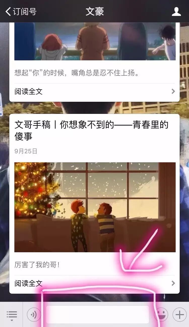 只需要在公众号聊天界面发送消息即可~