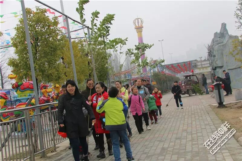 种完树的小朋友们随着家长的脚步来到了莫愁湖游乐场的