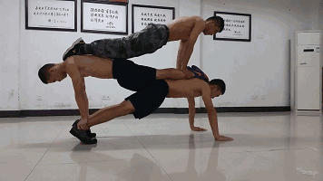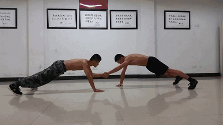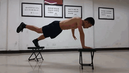 之后两人协同,受训者双手撑在马扎上面,帮训者将受训者的双脚抬起至自己腰部位置,而后受训者进行俯卧撑训练。这样训练的优势在于可以充分锻炼受训者臂力,同时使胸大肌拉伸充血,增大肌肉维度。