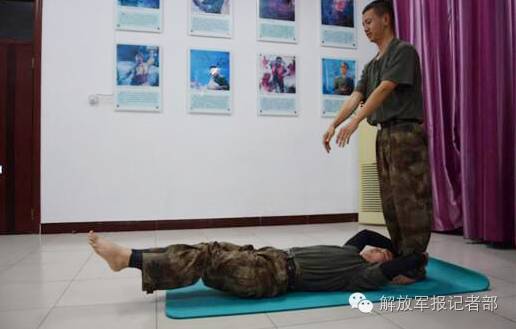 之后是二人协同训练,受训者躺下抓住帮训者的脚踝,同时收腹举腿。帮训者负责用力推动受训者的脚尖,给其施加阻力,以增强受训者的腹肌训练水平。一组过后,二人交换角色。
