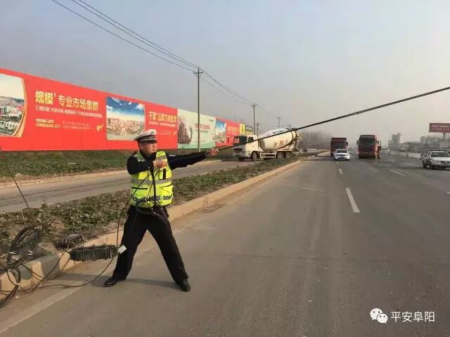 阜阳交警和电缆“较劲”,生拉硬拽一个多小时!