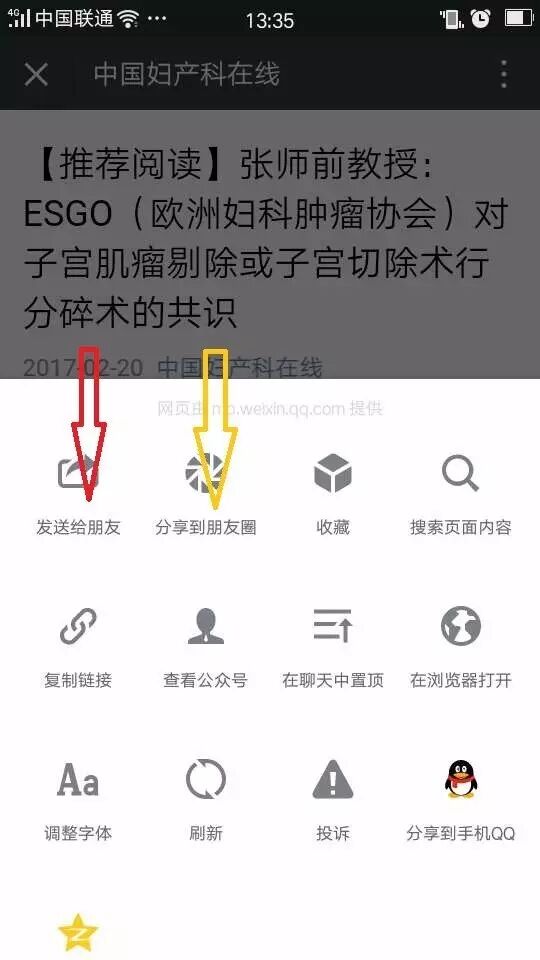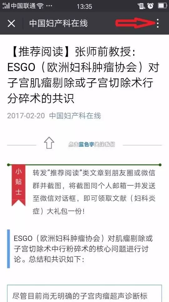 第一步:转发中国妇产科在线【推荐阅读】文章到微信群或朋友圈