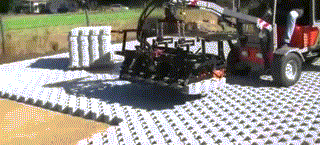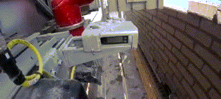 ▲机械手臂自动砌砖。经过改装的工业机械手臂,可实现抓取砖块,砖块两侧面抹灰,放置到指定位置的一系列砌砖操作过程。