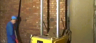 ▲自动抹灰机。主要用于墙面抹灰,效率很高