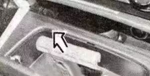 变速器锁联锁:如下图所示沿箭头方向拉出松脱工具,这样变速器锁就恢复联锁。