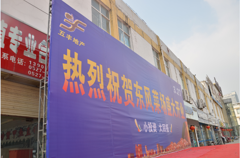 东风菜市场前段时间整顿重新装修,现在终于开业啦,现在去里面买菜就像逛超市一样,即整洁又卫生!记得以前去东风菜市场买菜,既脏又乱,连下脚的地方都没有。真心为东风大市场赞一个!(东风菜场开业舞台)