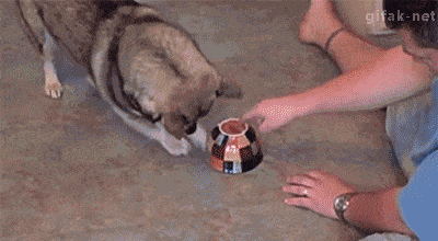 喝空气的小黑,“嘿,你舌头拉在外面了”~