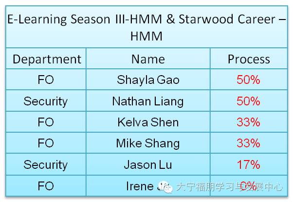 接下来给大家分享截止至2016年5月13日E-Learning课程的学习进度。特别注意,所有E-learning学员需在今年5月底前完成所有课程,SW Career学员需于今年6月底前完成,最后几天,请各位学员合理安排进度哟!