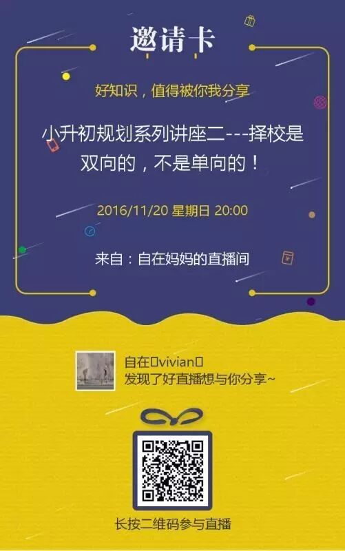 今晚20:00千聊在线讲座,“择校从来就是双向的,不是单向的!”开讲。点击图片进入。