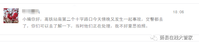 前天热心网友发来一则交通事故信息,位于萧县高铁站南侧的十字路口发生一起车祸,昨天该网友路过此处又见到发生一起交通事故,事故详情以官方调查为准,本信息旨在提醒广大市民经过该路口时一定要注意减速慢行,安全驾驶!