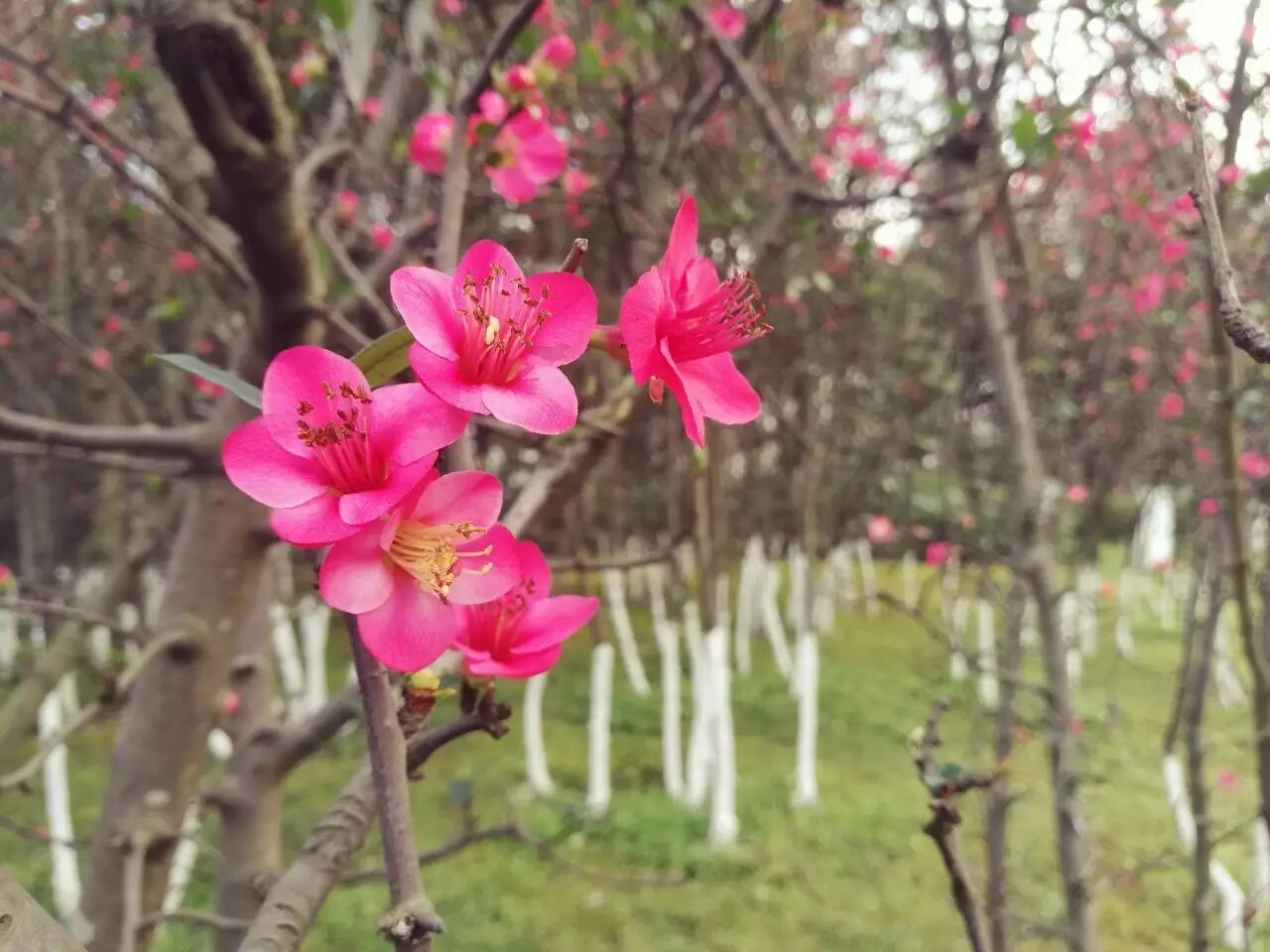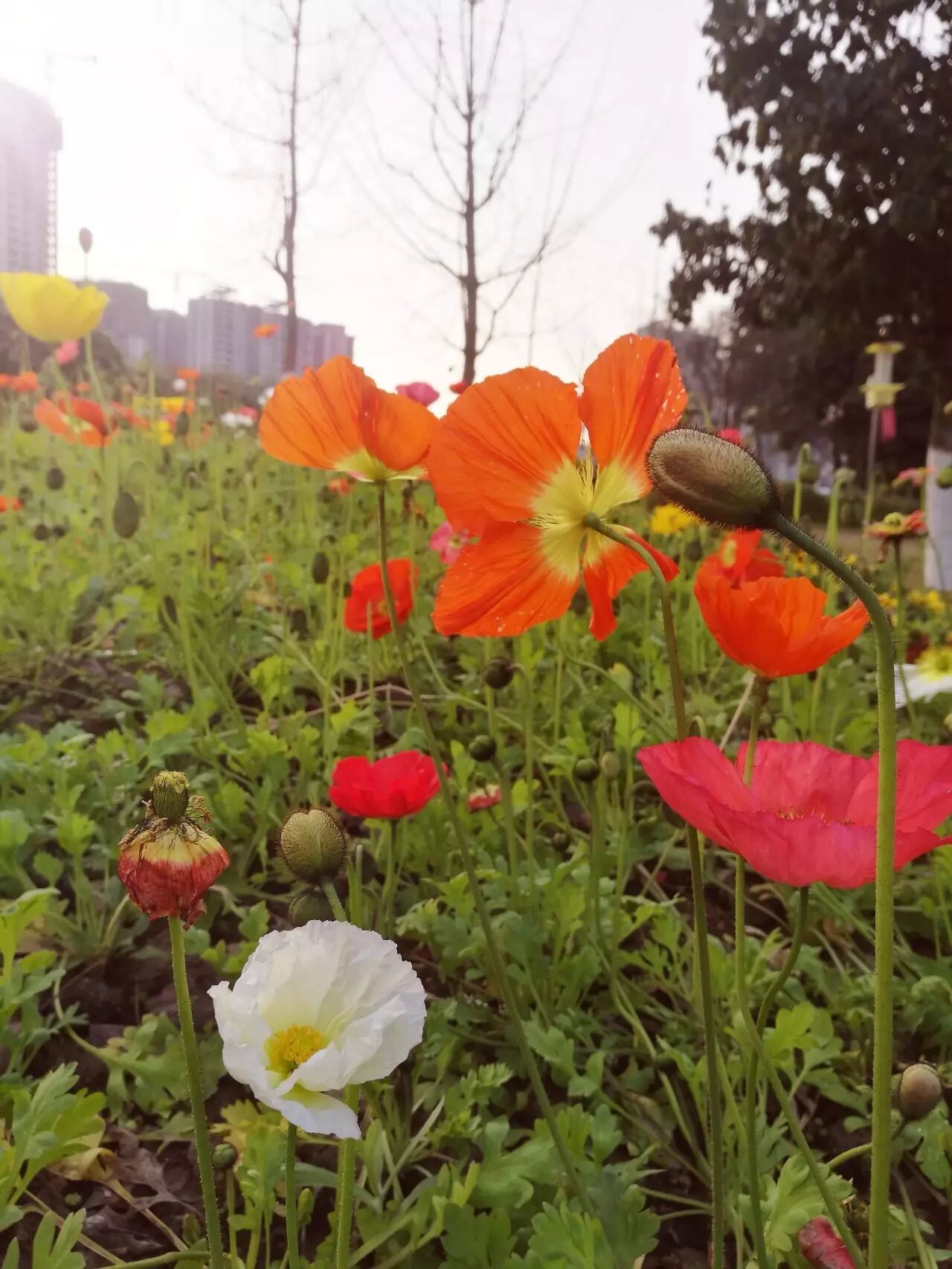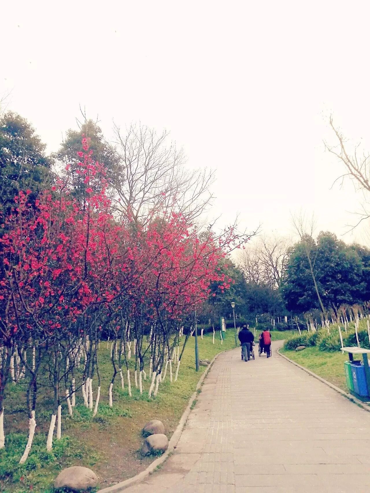 蜀中历来冬日阴绵,春日来早。此前立春,今日难得艳阳高照。归家途中看见江岸虞美人、海棠、三色堇、榆叶梅竞相开放,新年装饰未撤,春字灯笼彩灯树挂,遥相照映,有趣的很。