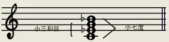 减和弦表示将小三和弦的五度音降低半间,1 b3 5 变成 1 b3 b5