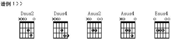 4)挂四 自然指的是挂留第四度音4 ,1 3 5变为1 4 5,即且Csus4,而C7sus4当然是加上小七度音变成1 4 5 b7
