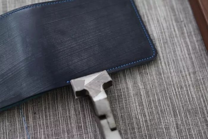线可以选用草本植物亚麻的纤维制作成的麻蜡线,我做长短夹居多,习惯的搭配是3mm斩距搭配0.38mm线粗,兼顾精致和耐用,而缝线的时间也会多花不少。