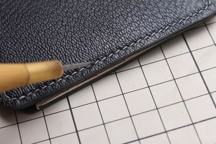 经过夹线后还需要单独修整一些不美观的线迹,建议用比较钝的锥子或者针,把起肉严重的捅回去斩孔。