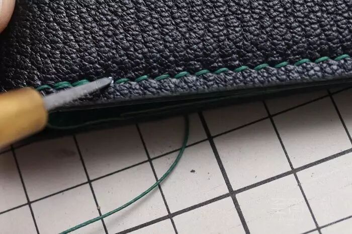另外也不要太过用力拉线,有可能会导致缝线部位皮革产生变形,还有可能会拉断线和拉伤手。