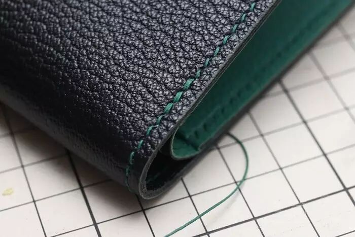 首先说一下我眼中的好线迹。好可以理解为外观上好看和实用的牢靠,手缝好线迹应该是一眼看过去是带有温度的整齐划一而却又不死板的,另外还非常紧密牢固地咬合着皮革,能默默承受皮具耐用度的缝线,不像缝纫机缝制的线迹,是很整齐好看,但略显呆板脆弱。