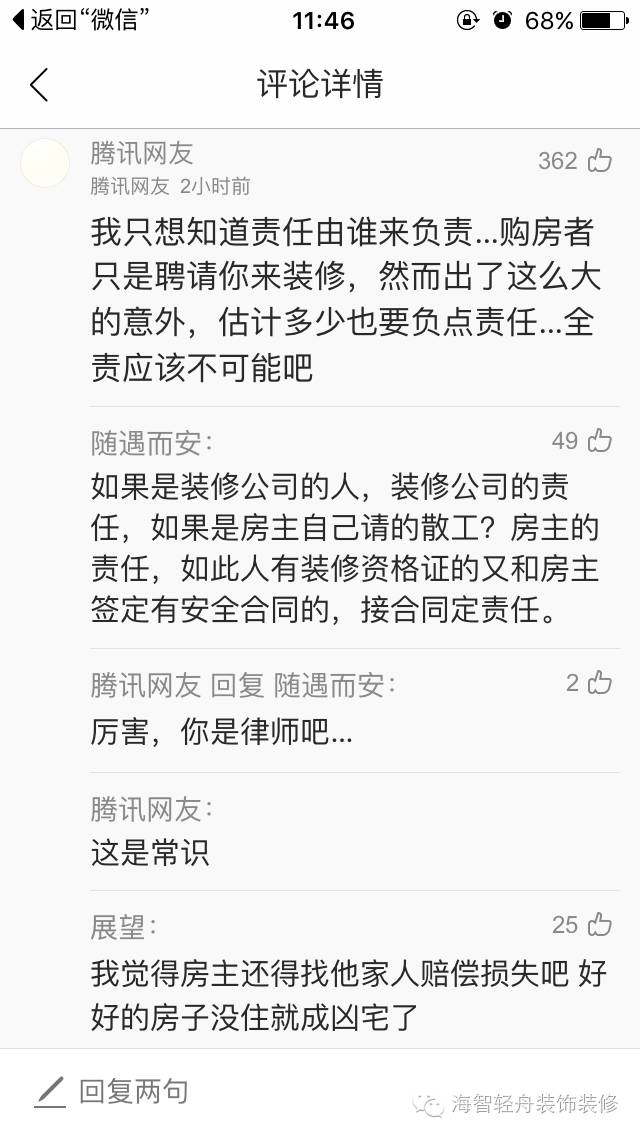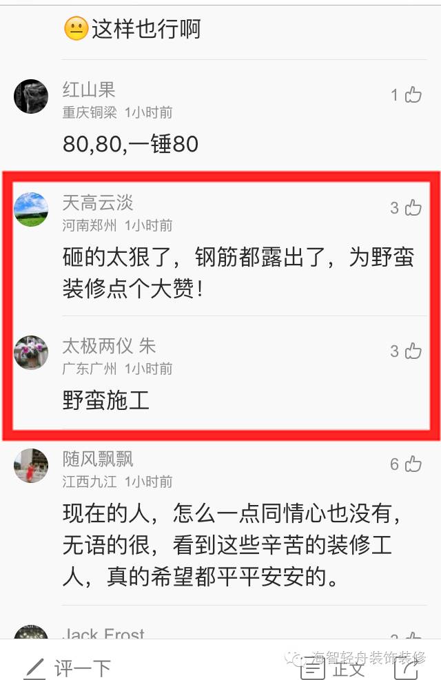 我想,看完这则新闻的任何业主都会有这样的疑问,尤其是准备装修新房的业主,更是担忧,我暂时先不发表意见,让我们一起来看看本则新闻的评论 ↓ ↓ ↓