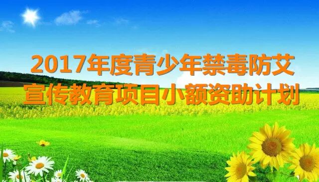 为鼓励和支持社会力量积极参与青少年禁毒和防艾宣传教育,在国家禁毒委员会办公室、,2017年度青少年禁毒防艾宣传教育项目小额资助计划,计划共立项青少年禁毒防艾宣传教育项目300个,并择优资助其中200个项目,即日起开始接受申报。