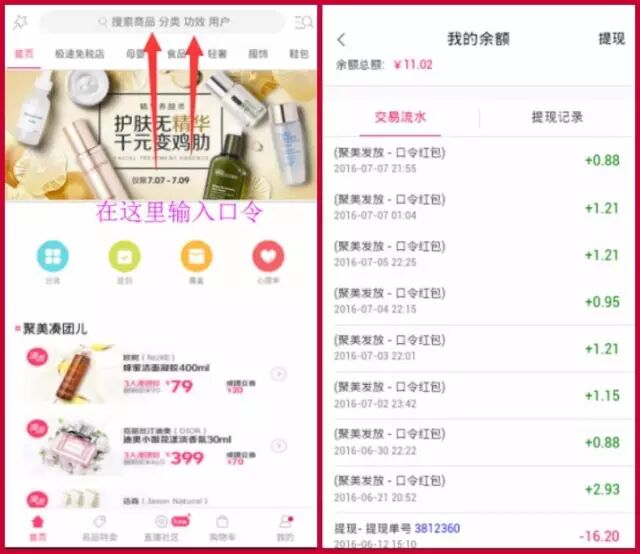 打开聚美优品手机客户端---在搜索框输入口令【来聚美抄底抢爆款】---搜索后拆红包。