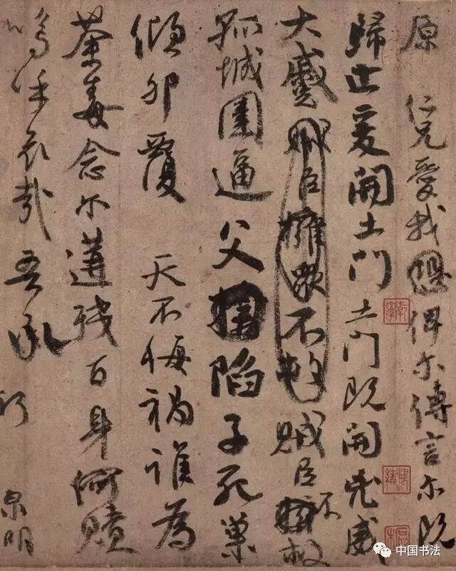 书幅的墨色协调很重要,谋篇布白当然不能忽视。古人虽然懂得墨法的重要,但是论述不多,因为他们学书工勤,学得了笔法,也随着学会了用墨,所以无须多讲。书法“中绝”后,人们因为学不好笔法,运笔不能与古人相比,所以就着重在字法和墨法上取巧创新。包世臣在《艺舟双揖》中说:“然而画法字法,本于笔,成于墨,则墨法尤书艺一大关键也。”沈曾植在《海日楼札丛》中说:“墨法古今之异…自宋以前,画家取笔法于书;元世以来,书家取墨法于画。”书家采取“墨分五色”的画法作书,就自然形成了浓墨、淡墨、枯墨、涨墨等妍蛋杂揉的情况。至于作书如何用墨,《书谱》不仅以巨篇墨迹作出了光辉的榜样,而且从正反两方面作出了精辟的阐释。所谓“巧涉丹青,功亏翰墨”,指明了作书用墨不符合书法的情况;而其“带燥方润,将浓遂枯”的至论,道破了书法用墨的诀窍。这就是说,只有以导顿疾涩、翻转耀抢的运笔方法,写出这样的墨色气韵,才能符合书法艺术的要求。