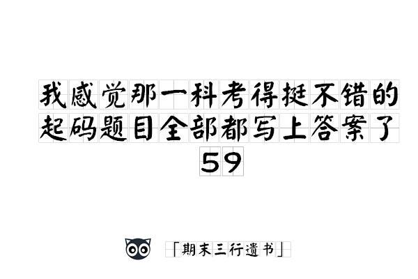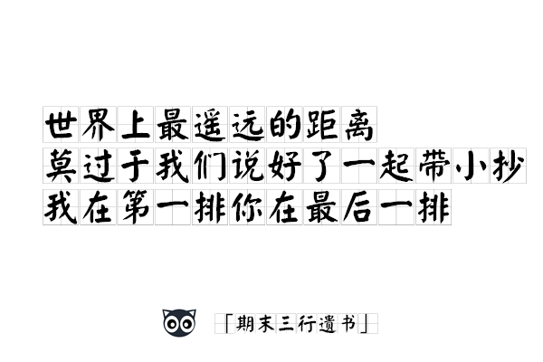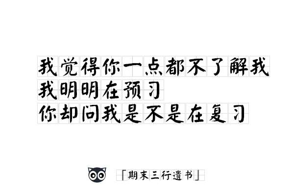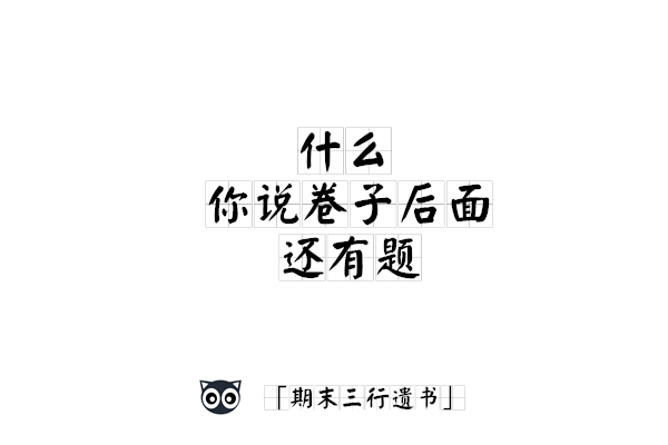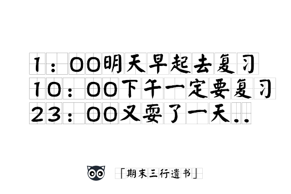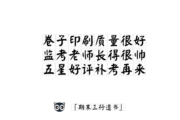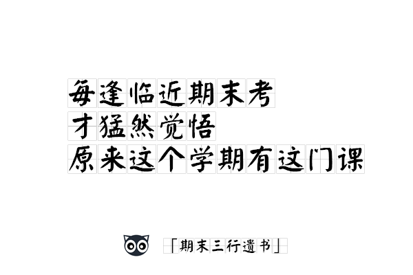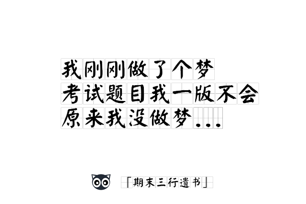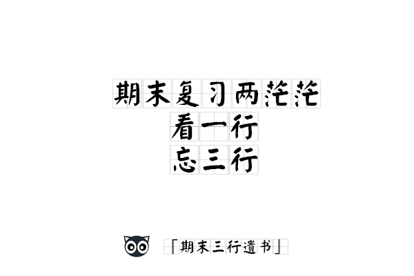 以上的,都是调侃,期末了,大家还是好好复习吧。无论平时的学习状态是怎样,到了期末考试季,还是抓紧一点。